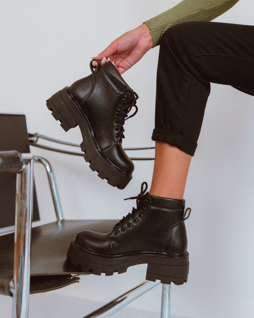Descubre los Borcegos Nantes: un calzado que combina estilo y comodidad. Elaborados en ecocuero, estos borcegos medio con cordones son la elección perfecta para la mujer moderna que busca versatilidad en su look diario.